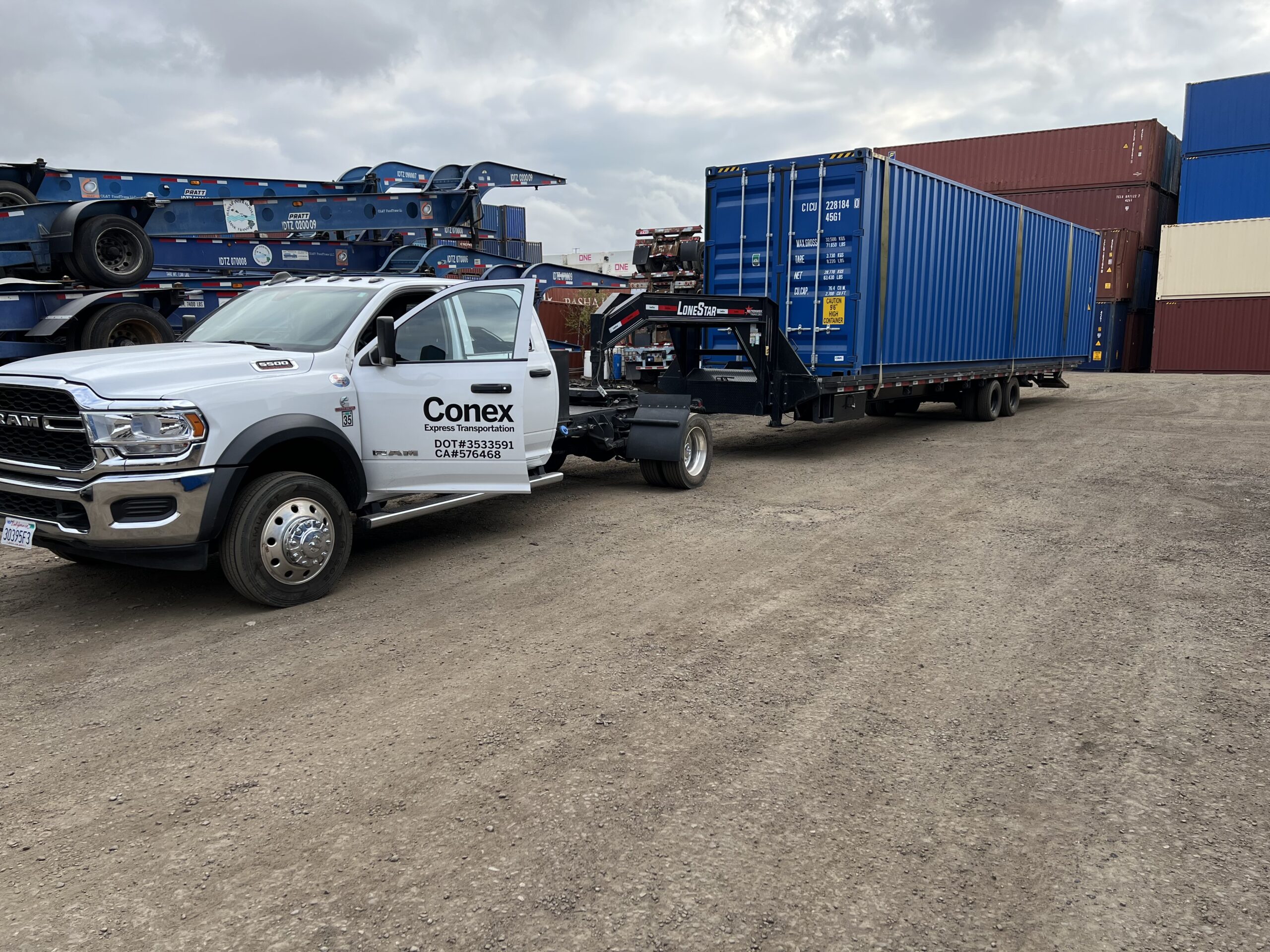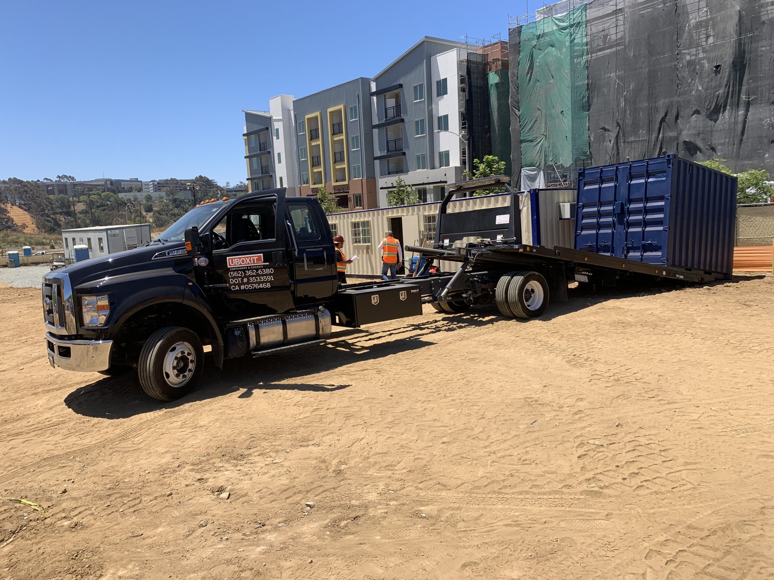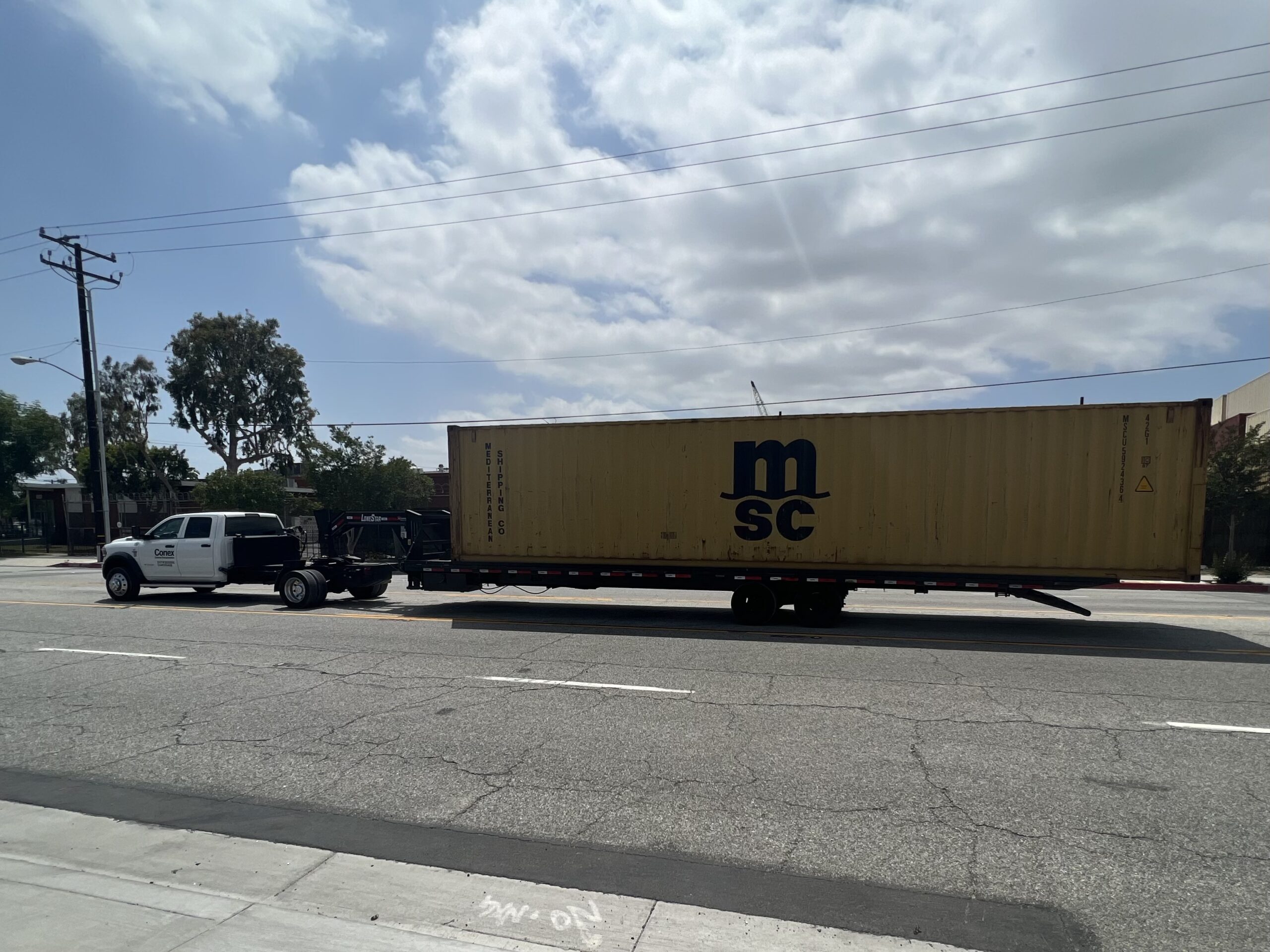Please let us know if there are any clearance concerns at the site or en route to the site. We will be happy to preview the route before delivery to confirm the delivery can be completed. Our 40’ standard, 40’ high cube, 45’ high cube, or 2 x 20’ rental storage containers are delivered and picked-up on these trucks.